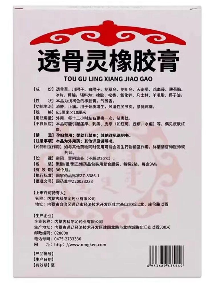 通用名稱(chēng):透骨靈橡膠膏